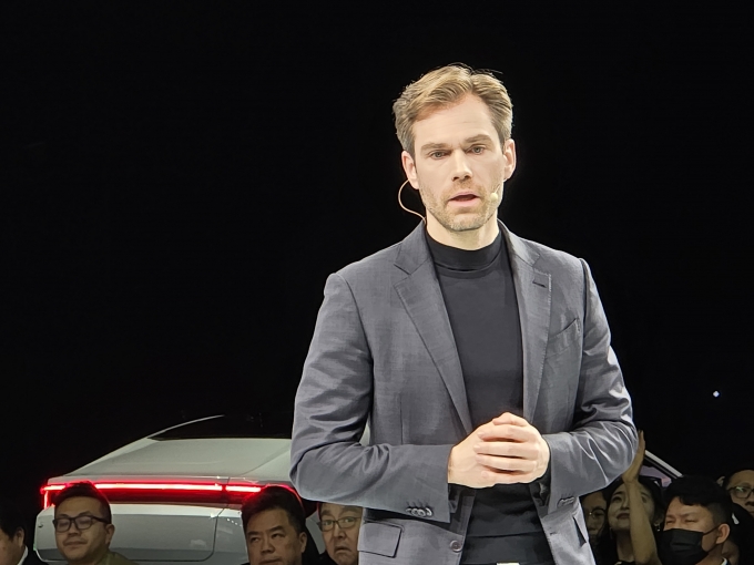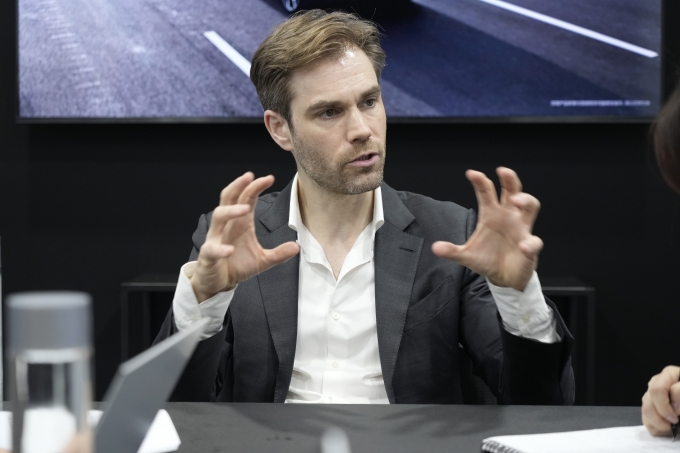 지난 25일 중국 베이징에서 열린 '2024 오토 차이나'(베이징 모터쇼) 행사장 내 폴스타 부스에서 막시밀리안 미소니 폴스타 디자인 총괄과 한국기자들의 인터뷰가 있었다.