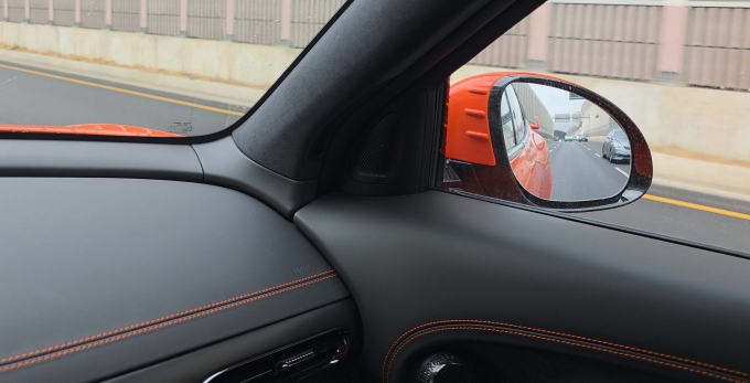 보통 스포츠 모드 전환 시 딱딱하고 불쾌한 충격을 주는 여타 차량들과 달리, 마그마는 노면 충격을 부드럽게 걸러냈습니다. 이는 과하게 단단하지 않고 적절히 균형 잡힌 가변 전자제어 댐퍼 덕분인데요. 연속적인 굽이길과 고가차도 이음매에서도 불쾌한 진동과 불안함이 없었습니다.
