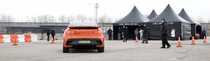 드래그 레이스 구간에서 시작된 첫 인상은 ‘압도적이었다’는 단어가 적합했습니다. 0에서 100km/h까지 순간 가속력은 전기차 특유의 즉각적인 토크 감각과 함께 용암이 분출하듯 폭발적이었다. 최고속도 264km/h도 단순 수치가 아님을 몸소 느낄 수 있었는데요.