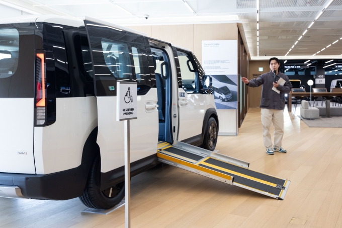 먼저, PV5 WAV(Wheelchair Accessible Vehicle)는 이름처럼 휠체어 이용자의 이동 편의를 최우선으로 만든 차량이라 탑승부터 특별했습니다.