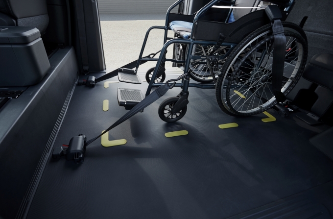 휠체어 측면 출입이 가능해 교통약자의 자유로운 이동 보장을 위해 세심한 배려가 느껴졌는데요. 휠체어 고정장치와 3점식 안전벨트가 기본 장착되어 승객 안전에도 꼼꼼함이 돋보였고, 차량 내부는 넉넉하면서도 운전자 포험 6명이 탑승 가능한 쾌적한 공간감이 인상적이었습니다.